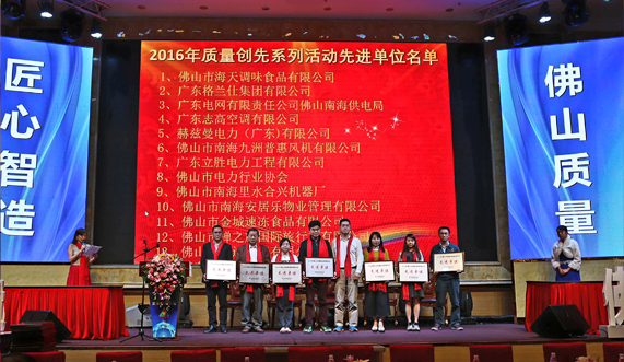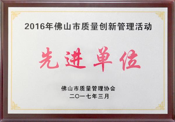 我司被評為“2016年佛山市質(zhì)量創(chuàng)新管理活動先進單位”